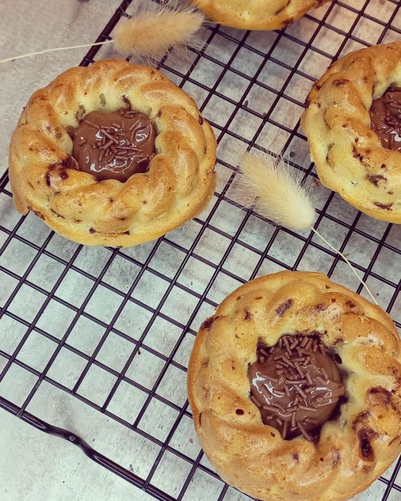 Vous pouvez remplir les cavités avec de la pâte à tartiner et décorer avec des vermicelles de chocolat ou des éclats de pralin ou tout autre topping de votre choix 😉!