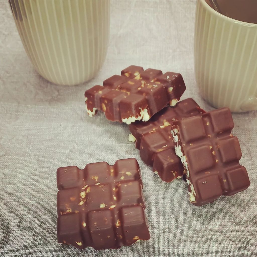 âȘïžLe rĂ©partir et le badigeonner dans 6 empreintes du moule 12 petites tablettes en recouvrant jusqu’Ă mi-hauteur