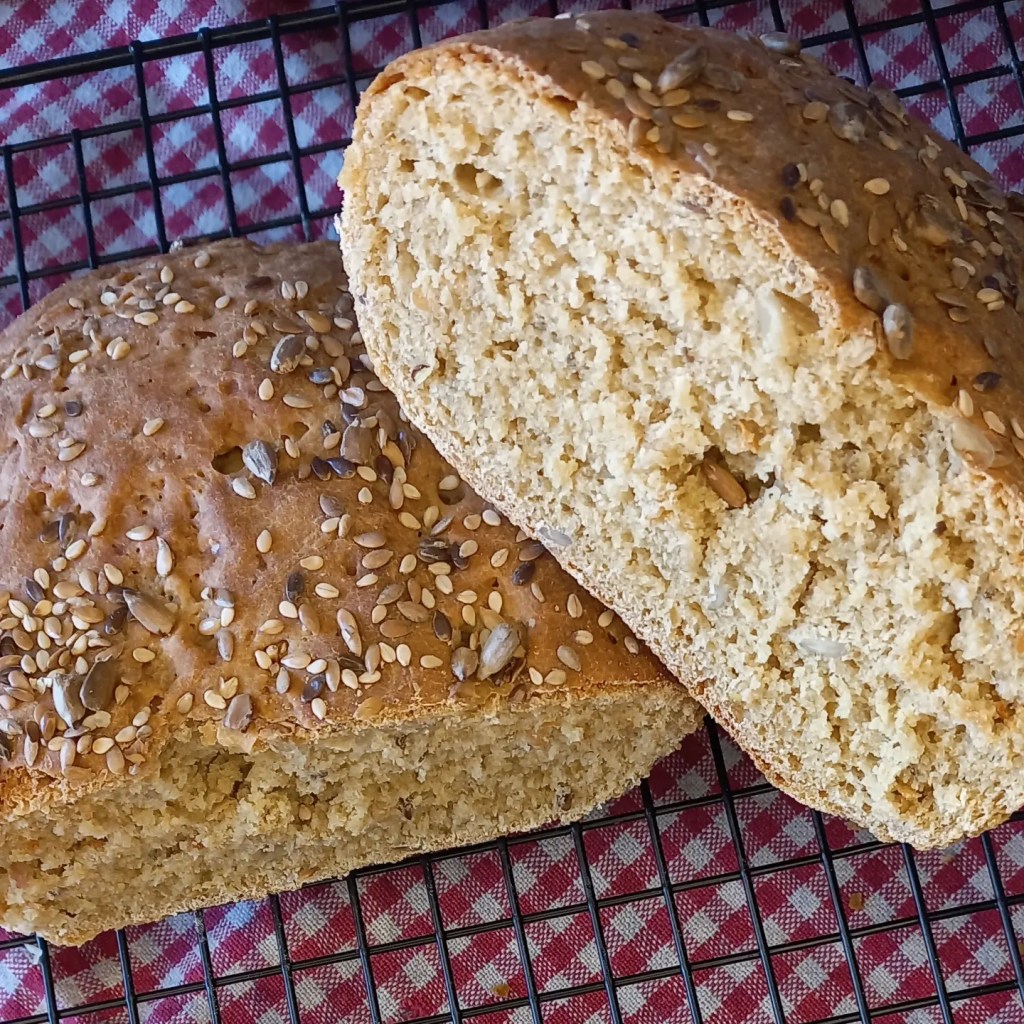 ▪️Badigeonner votre ou vos pains avec un peu d’eau et déposer des graines de mélange du boulanger sur le dessus