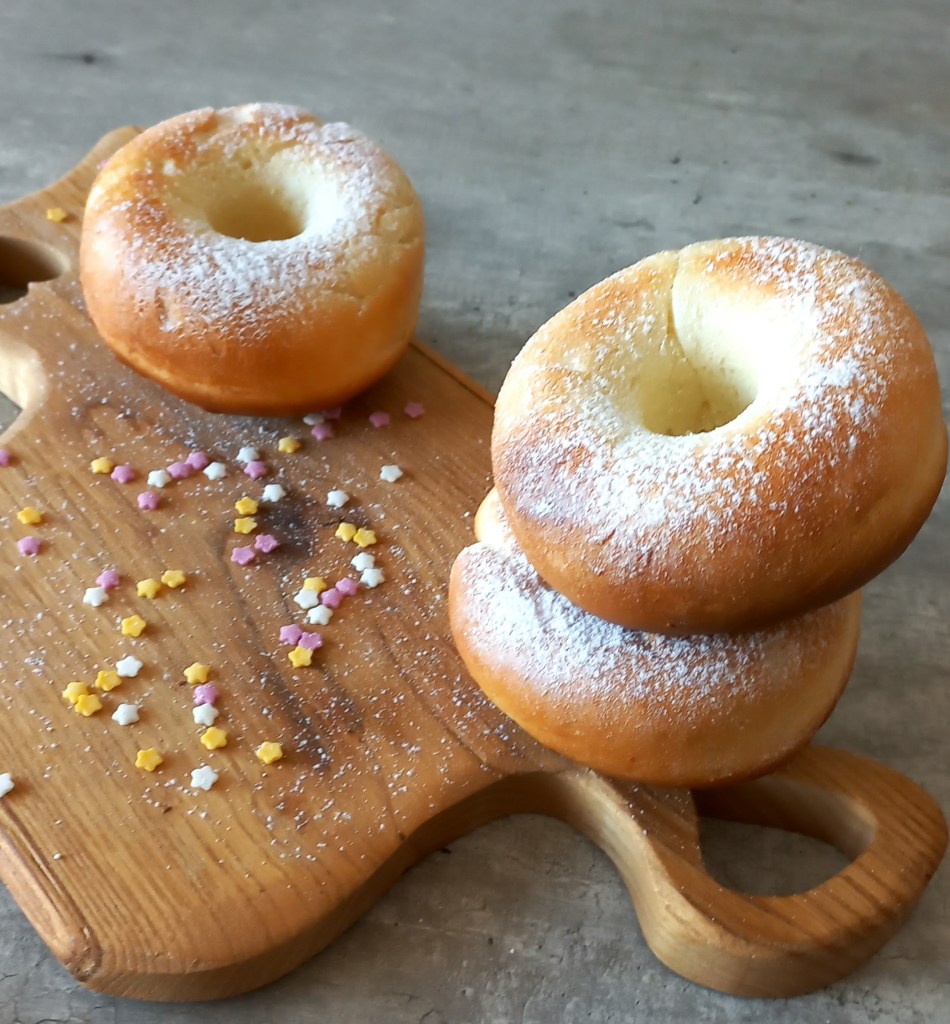 Bientôt carnaval, du coup c’est parti pour la marathon donuts, beignets, etc… Par contre, mon estomac a beaucoup de mal avec les beignets cuits dans l’huile de friture… Alors oui je sais, ce n’est pas pareil mais la variante, cuisson au four, est vraiment pas mal alors je vous partage la recette (inspiration Laura Hervé ) :