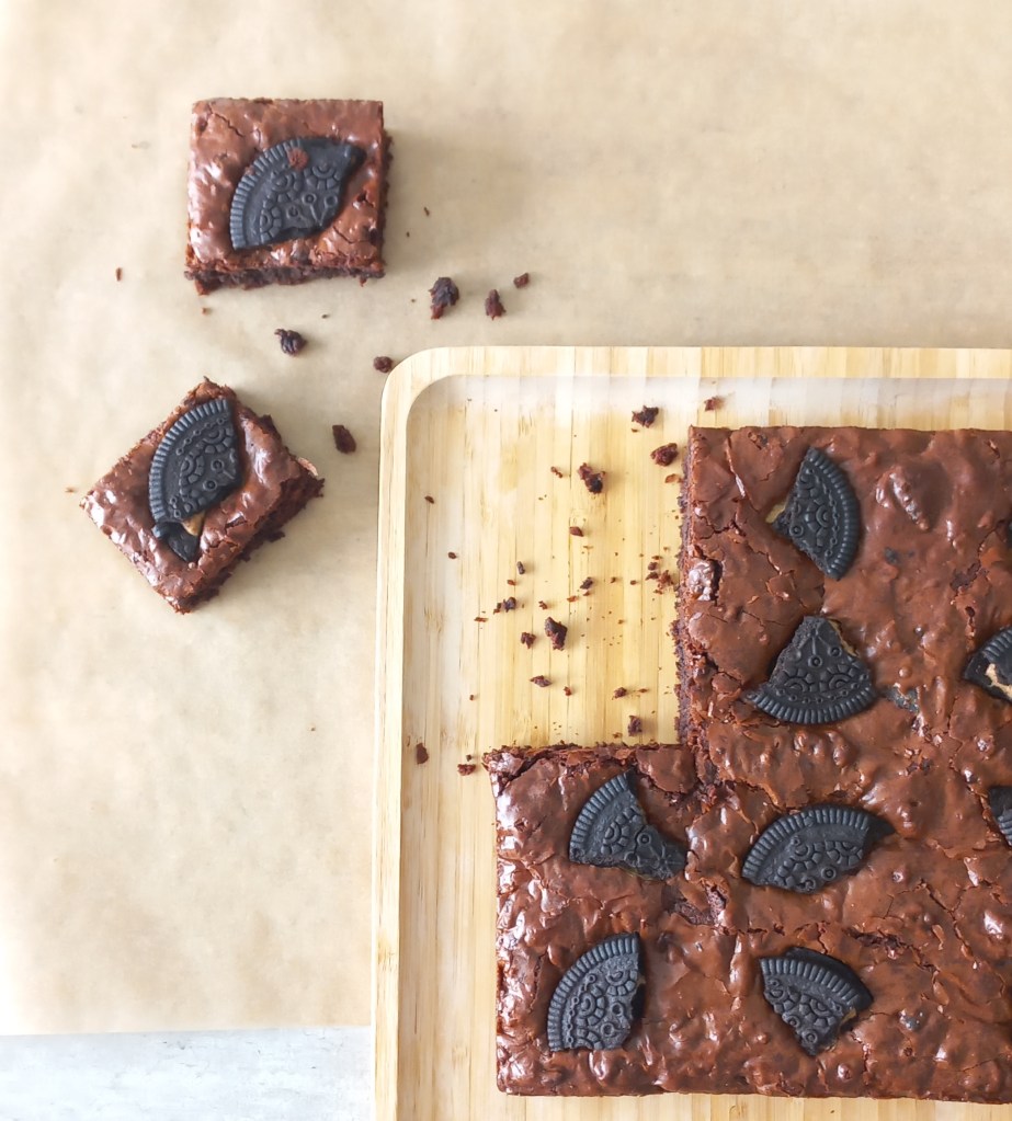 ▪️Verser la pâte et déposer de manière régulière les 12 quartiers d’Oreo