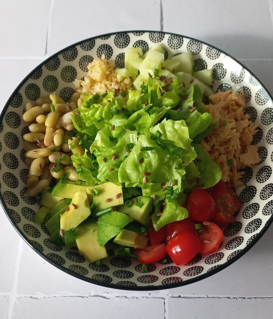 Je vous partage ma délicieuse petite salade faite récemment, le genre de salades que je pourrai manger tout le temps à l’arrivée des beaux jours ☀️: