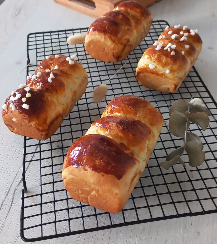 ◾Badigeonner les brioches avec le jaune d’oeuf (vous pouvez également ajouter des perles de sucre)