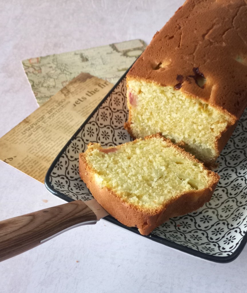 Et voilà, c’est prêt ! Un bon cake moelleux à la rhubarbe 😋!