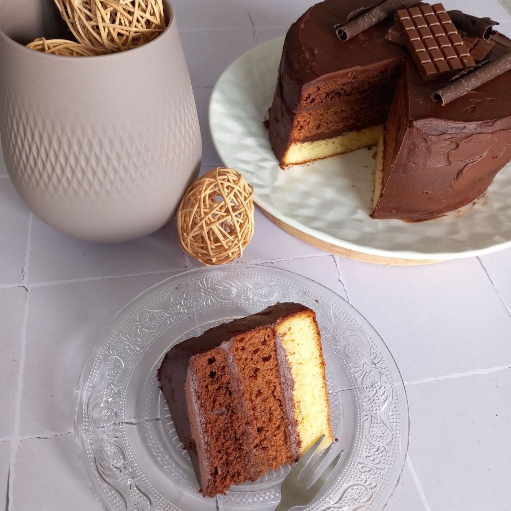 ▪️Monter le layer cake en superposant les génoises couvertes de ganache