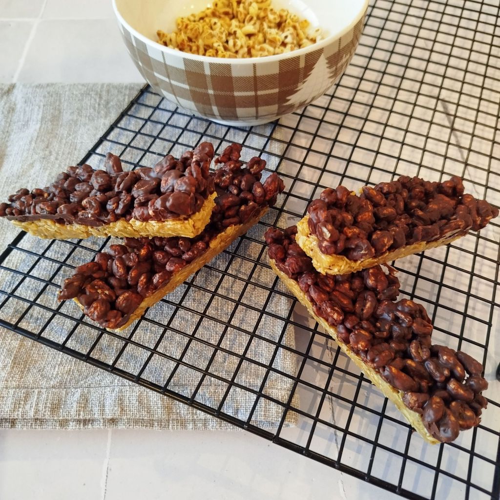 ▪️ Faire fondre le chocolat au bain-marie puis ajouter le blé soufflé et mélanger