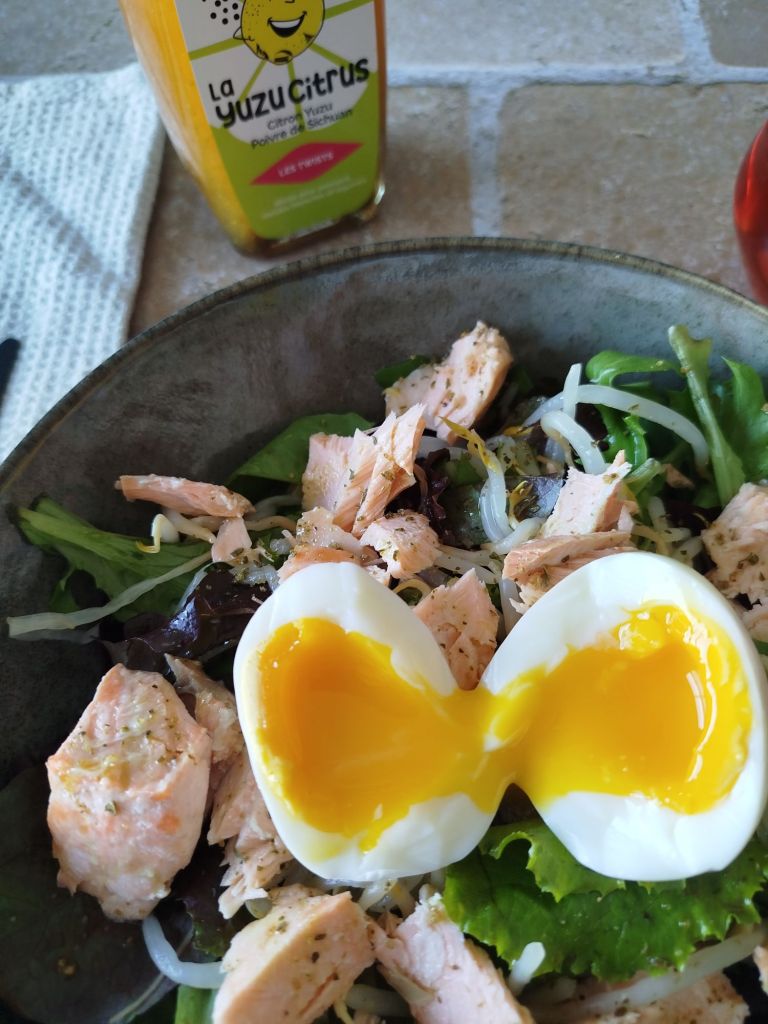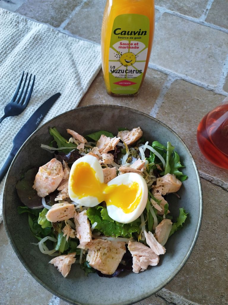 Je ne sais pas vous mais moi clairement je ne mange pas assez de poisson 🐟pourtant j’adore ça 😋, alors récemment je me suis préparée une délicieuse salade au saumon que j’ai assaisonné avec la sauce Yuzu Citrus Cauvin ⬇️: