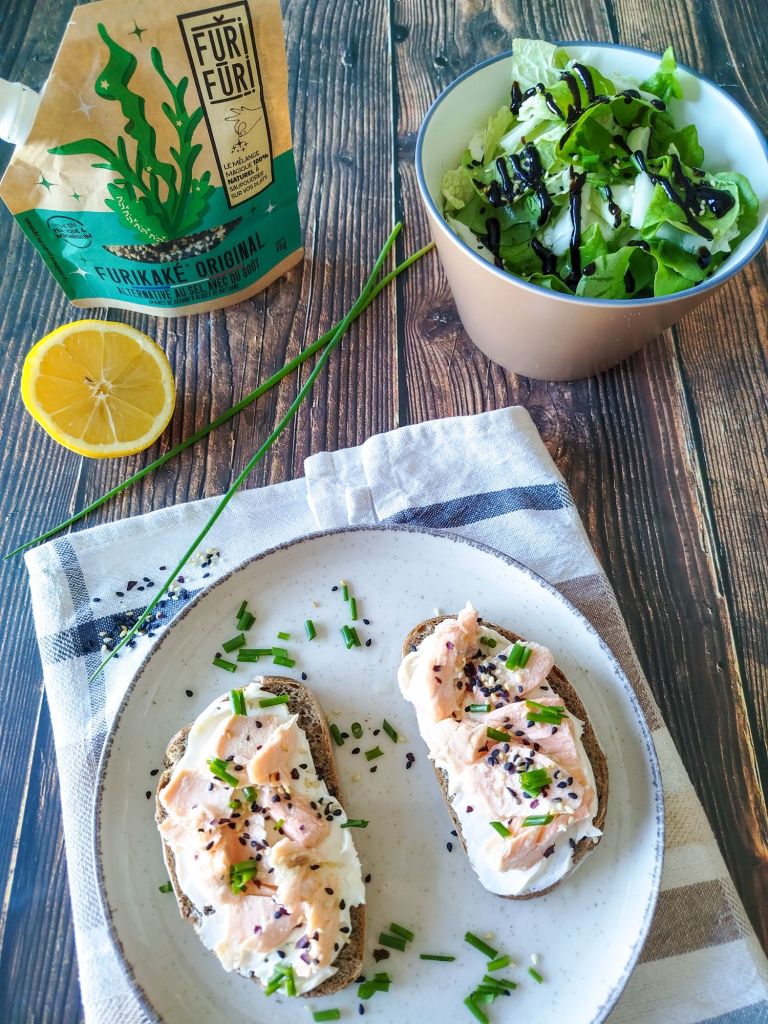 Je vous propose souvent des idées de tartines salées, avec une petite salade, je trouve que ça fait un repas complet, facile, rapide et sans prise de tête 😄! Et j’ai du coup pu tester le mélange Furikaké de Furifurifamily , une très bonne alternative au sel à base de sésame et d’algues bio de Bretagne, franchement, je vous le conseille vraiment 👌: