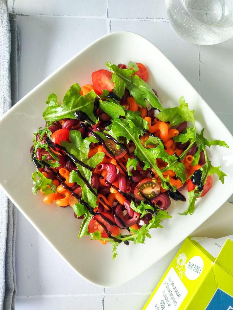 Si vous me suivez depuis un moment, vous savez que j’adore les salades en tout genre (et les planches apéro et les tartines salées 😜). Ce que j’aime particulièrement avec les salades c’est qu’on peut très facilement varier les saveurs et tester de nouvelles associations, voici ma petite dernière : une salade de pâtes toute simple avec des pâtes Torti’color carottes ~ betterave Valfleuri reçues ⬇️: