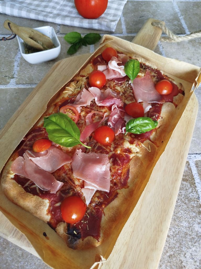Je suis devenue fan de pinsa 😄! Une nouvelle version ici avec du jambon ⬇️: