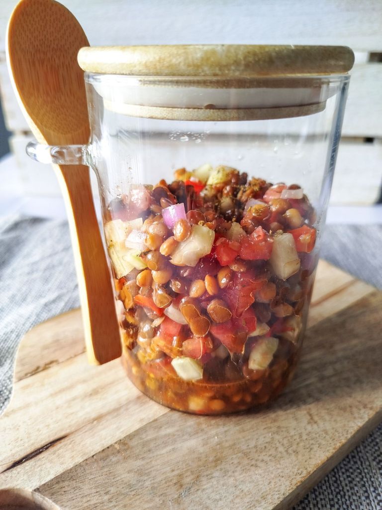Alors je vous partage encore une petite recette « fraîcheur » (pour une verrine, vu que je Ia la seule à manger des lentilles 🙄):