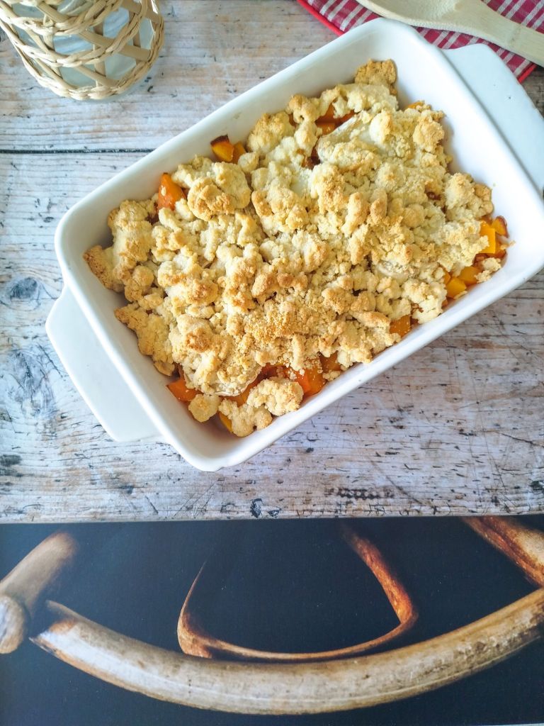▪️ Recouvrir le butternut et le fromage de chèvre de pâte à crumble