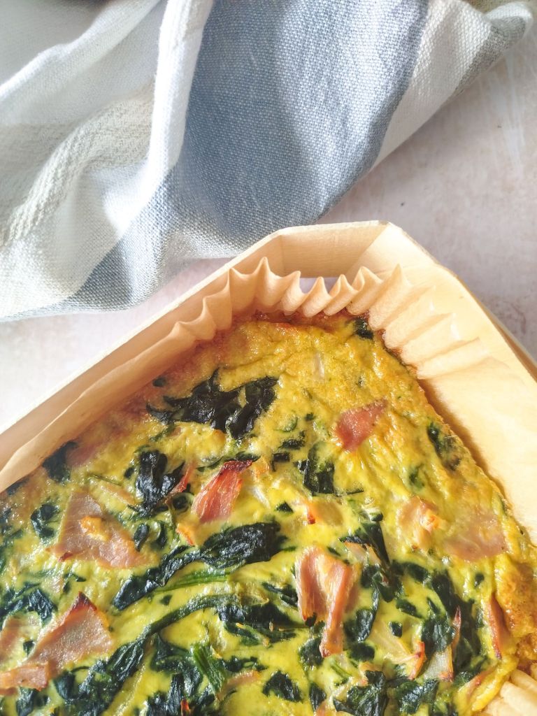 ▪️ Ajouter les épinards, l’oignon et le jambon coupé en morceaux et mélanger le tout