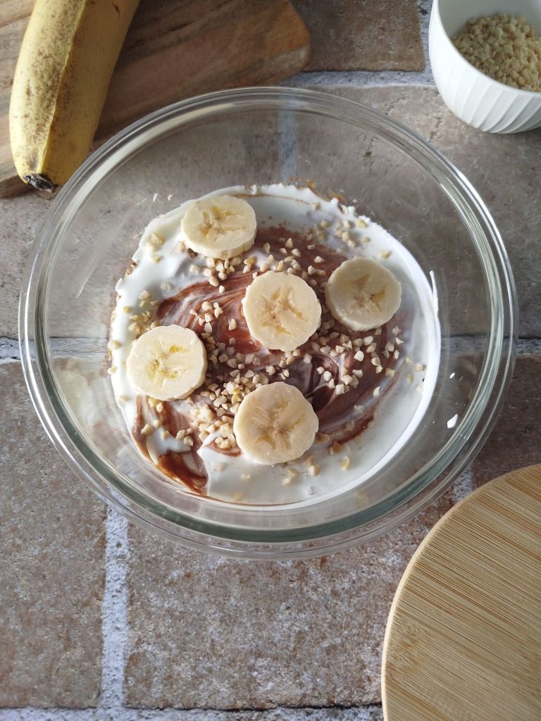 ▪️ Rajouter le topping de votre choix : banane et éclats d’amandes